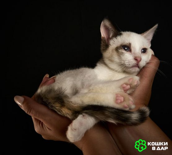 спасен от слепоты, в следствие чего один глазик немного косит, что придает ему еще больше очарования любит играть, лежать в гамачке и обниматься. Очень дружелюбный и ласковый