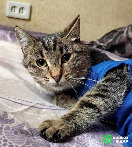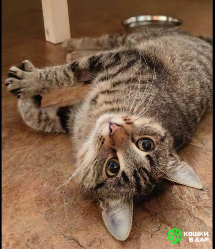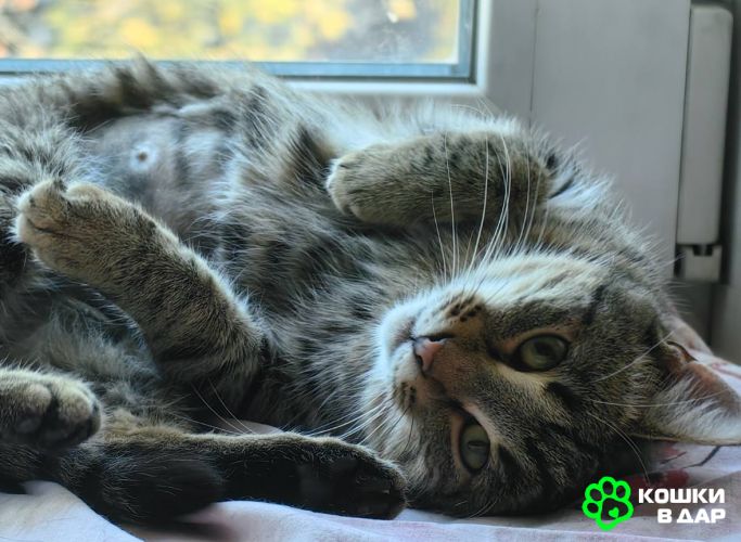 Кошечка стеснительная, скромная, застенчива. Игривая, но не навязчивая. Любит смотреть в окно. Очень любит, когда её гладят, начинает урчать и подставлять животик, но на ручках пока не сидит. В кровать так же пока не идёт. Пристраивается единственной любимицей. Кушает хорошо, лоток на отлично.