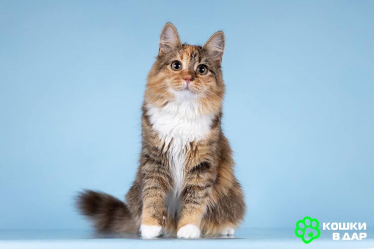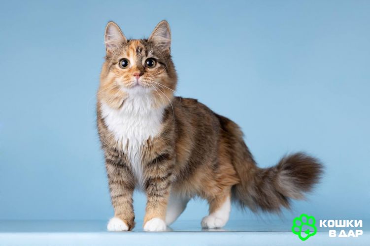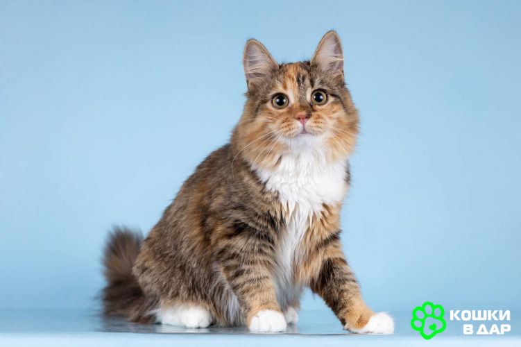Фиона как нежный пушистый цветочек до того красивая и милая! Густая шелковая шубка счастливой расцветки так и просит её погладить.Фиона ласковая и разговорчивая девчушка. Очень добродушная и милая. А если у Вас уже есть котик, то малышка с ним подружится. Родилась в марте 2025.