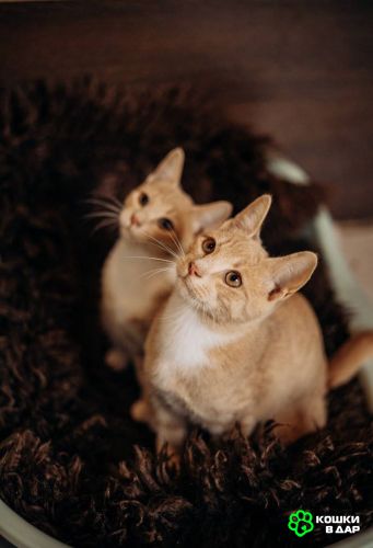 Возраст 5,5 месяцев. Окрас кремовый рыжий. Девочка слева, мальчик справа. Обработаны от глистов, блох, клещей. Анализы сданы, вирусных инфекций нет.