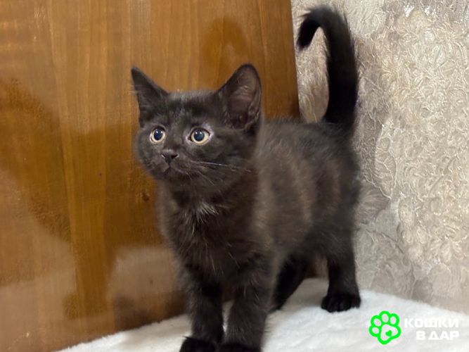 Черный мальчик хулиганчик Проша. Возраст 2 мес. Активный ребенок, любознательный. За ним глаз да глаз нужен, за секунду оказывается в самых разных местах. То сидит в стиральной машине, чуть отвернулся - ходит по сушилке. Чистоплотный, обработанный. К лоточку приучен.