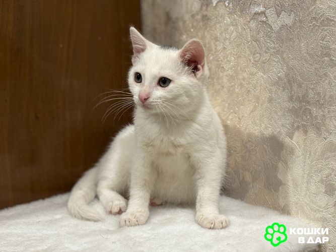 Белый мальчик Юки (по-японски значит снег). Возраст 3 мес. Малыш с прекрасным характером. Добрый, ласковый, контактный. Любит покушать. Прекрасно ходит в лоток. От глистов обработан.