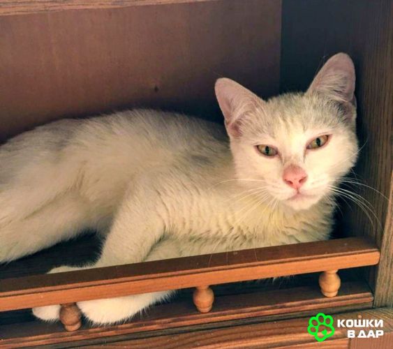 Альбус — зеленоглазый белый котик, добрый, ласковый, умный. Ах, каким красавцем он бы был, если бы судьба была хотя бы немного добрее к нему! Грязный и худой, с больными глазами и свалявшейся шерстью, кот был найден на улице едва живым. Как он был благодарен за спасение, как покорно терпел уколы и глотал таблетки! На приеме в клинике выяснилось, что у Альбуса больные зубы, и почти все зубки ему пришлось удалить.