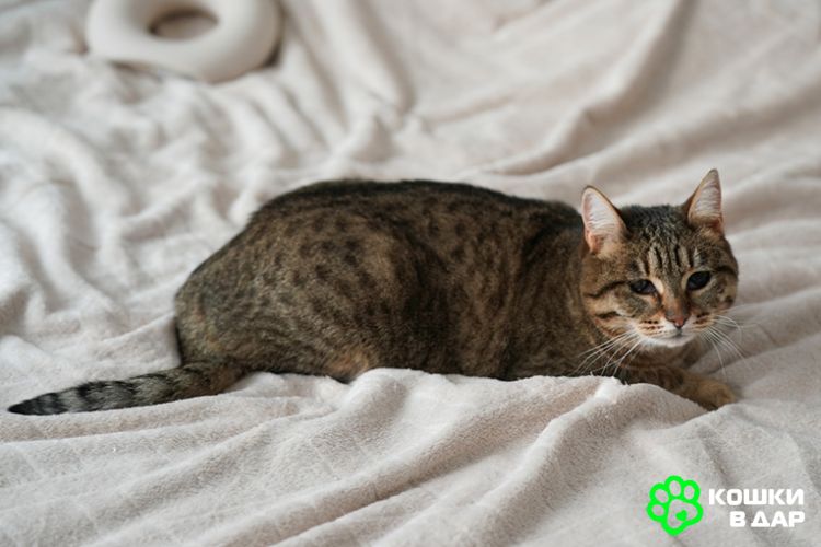 Эта милая, нежная и дружелюбная кошечка, несмотря на свой недуг, полна энергии и готова дарить тепло и ласку.