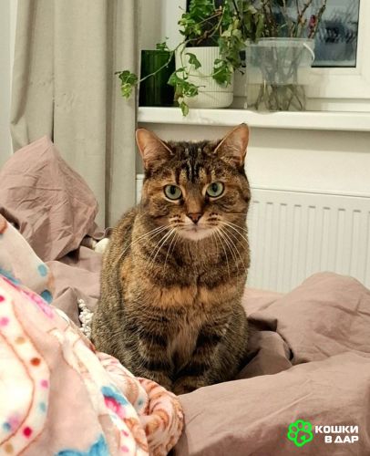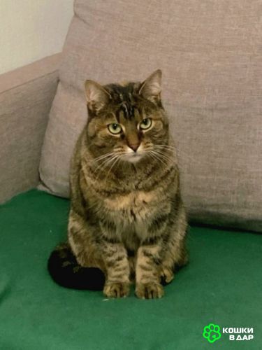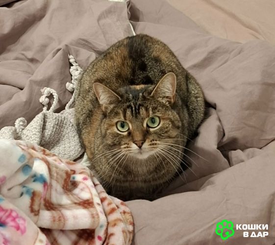 Зеленоглазая красавица Верочка обладает мягонькой пёстрой шубкой, фото не передаёт её трехцветного окраса с рыжинкой