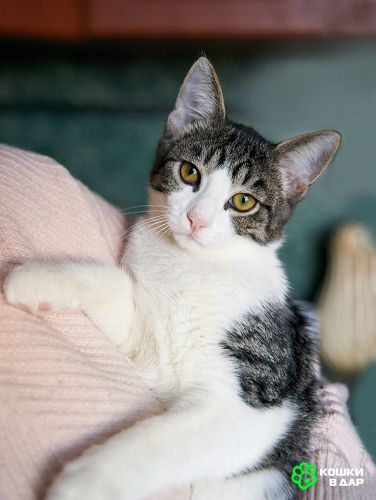 Но не думайте, что он только нежится! Как и все детки, Месси не против побеситься и поиграться — он живой, весёлый и очень контактный котик.